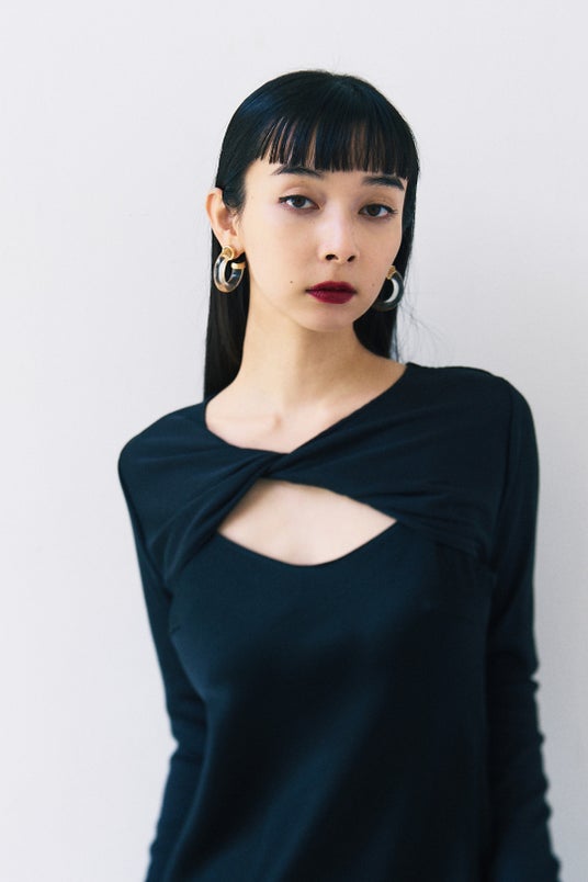 バイヤスで生地をとっているため落ち感があり、レイヤードスタイルにもおすすめ。
