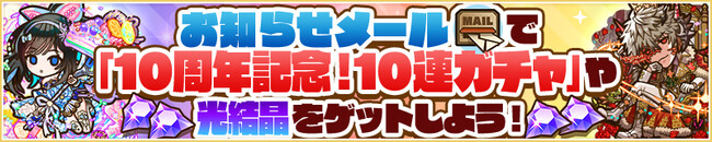 お知らせメールで「10周年記念!10連ガチャ」や光結晶をゲットしよう!