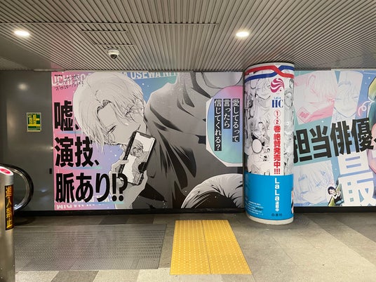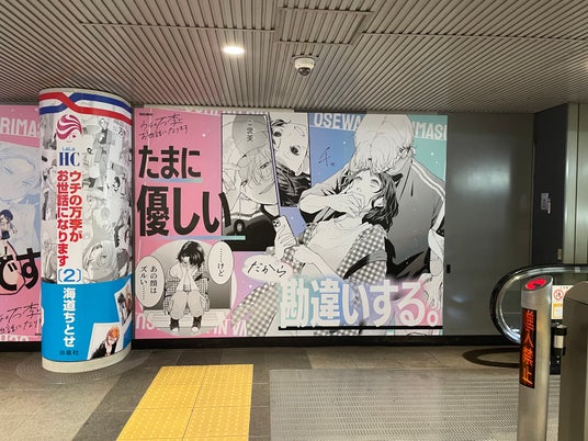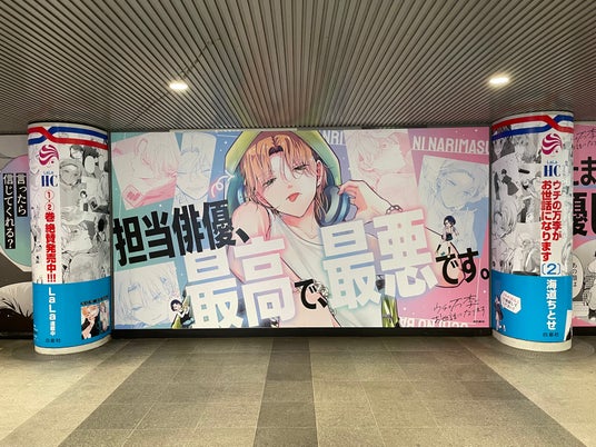 「ウチの万李がお世話になります」渋谷駅ロイヤルボード広告(C)海道ちとせ/白泉社