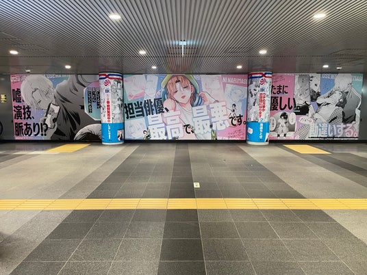 田園都市線渋谷駅ハチ公改札内、渋谷ロイヤルボードにて「ウチの万李がお世話になります」の巨大広告が掲出中です。