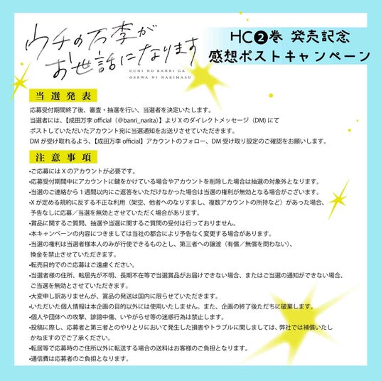 応募の詳細は発売中のLaLa2月号(販売期間:~2025年1月23日[木])と 2025年1月4日(土)発売のHC2巻の帯をチェックしてください。