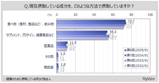 マイボイスコム株式会社(東京都千代田区、代表取締役社長:高井和久)は、8回目となる『健康によい成分』に関するインターネット調査を2025年9月1日~7日に実施しました。