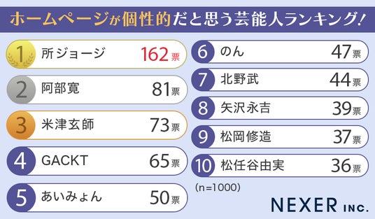 株式会社NEXER・ホームページが個性的だと思う芸能人に関する調査