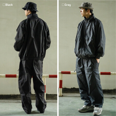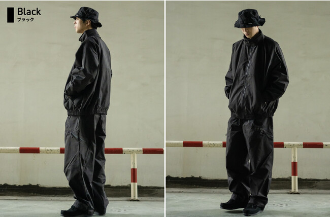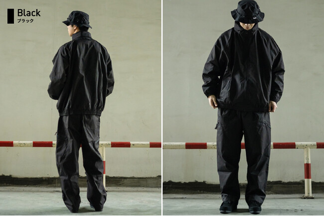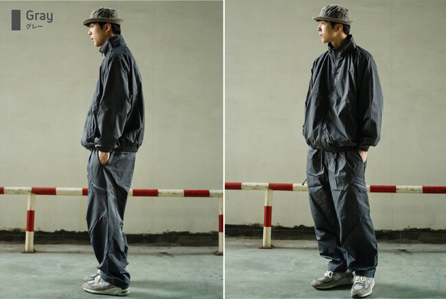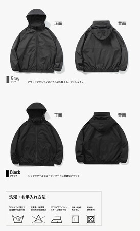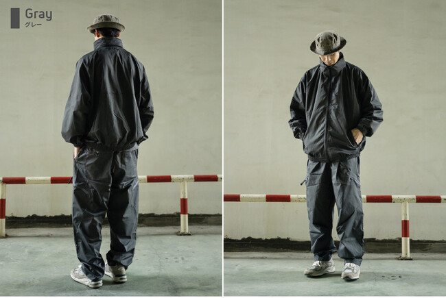 ブラックとグレーの2色カラーバリエーション、メンズ用S・M・L・XLサイズ展開