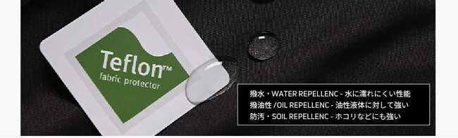 GeeTransientは、撥水性が高く、汚れにも強いテフロン素材を表生地に採用。