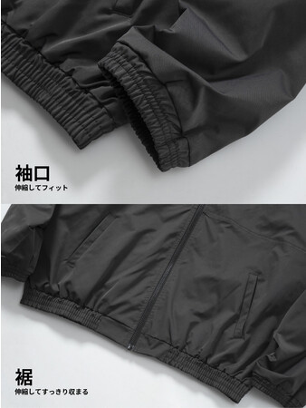 YKKのファスナーと、伸縮性のある袖口と裾で、アウトドアやスポーツでも動きやすい形状です。