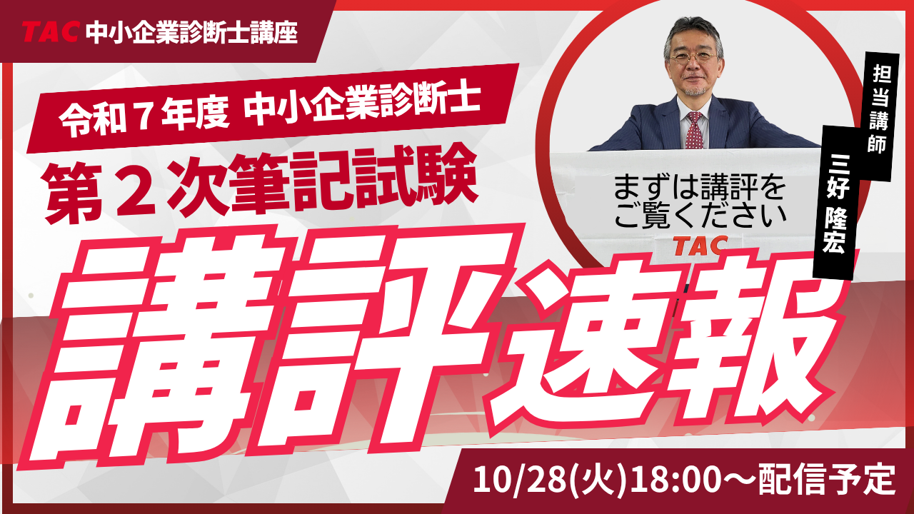 10月28日(火)18:00配信開始予定(TAC診断士講座YouTubeチャンネル)