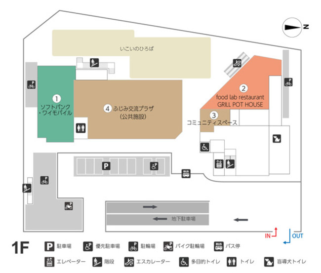 地下 1 階、地上 3 階建ての施設には、公共施設「ふじみ交流プラザ」やレストラン、回転寿司、家電量販店、内科クリニックなどがそろうほか、各階には地域の方々が気軽に集える広場を設け、多世代が交流できる設計になっています。また、誰もが使いやすいアクセシブルデザインを取り入れた計画や、多摩産材を活用した木のぬくもりが感じられるしつらえも特徴です。