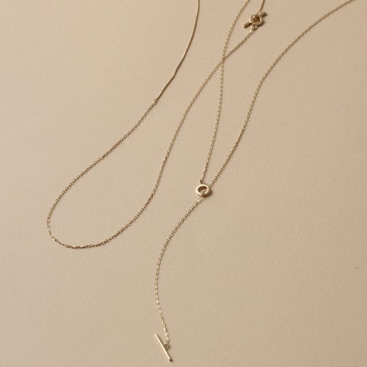 Tバーをあしらったネックレスは45cmと60cmの2種類を展開。