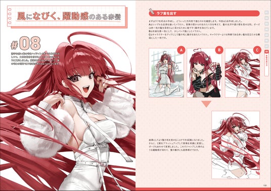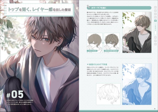 髪の構造の基本からスタートし、男性・女性キャラクターの髪型の描き分け、ショートやロング、ウェーブやポニーテールなど、多彩なスタイルを徹底解説。