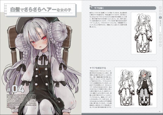・髪の構造 ・髪の描き方 ・髪の長さ ・髪の質感 ・髪の動き ・ハイライトの形・描き方 ・毛先の描き方 ・感情と髪の関係 ・髪型のバリエーション ・ヘアアクセサリー