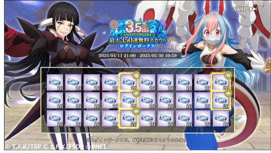 ■3.5th Anniversary 最大350連無料&100連無料スカウトログインボーナス開催!