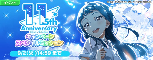 株式会社DONUTS(東京都渋谷区、代表取締役:西村啓成)がApp Store及びGoogle Playにて提供中のスマートフォン向けゲームアプリ『Tokyo 7th シスターズ THE SKY’S THE LIMIT』(略称:ナナシス)は、本日2025年8月19日(火)に11.5周年を迎えました。