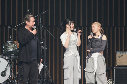 ライブを終えると、塩塚と河西が再びステージに登場し、クリス・ペプラーとトーク。ライブの感想を聞かれると、「『立っていいのかな?』ってそわそわしたり、手を振ってくれたりしているみんながかわいかった」「それぞれのスタイルで聞いてくれてあったかくてうれしかった」と、ライブハウスやホールとは違う環境でのパフォーマンスを楽しんだ様子。また、未来体験シアターについての話題になると、自身の体験した感想を「気がついたら泣きそうだった」と話した。この日のライブで初披露となった「未来地図2025」で打ち込みを導入したことについては「いつもとはまた違って」「“こんなに風になるんだ”って思ったよね」と述べ、この日の初披露へ手応えを感じたと明かした。