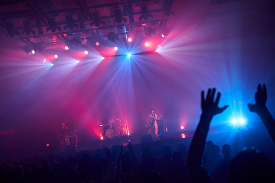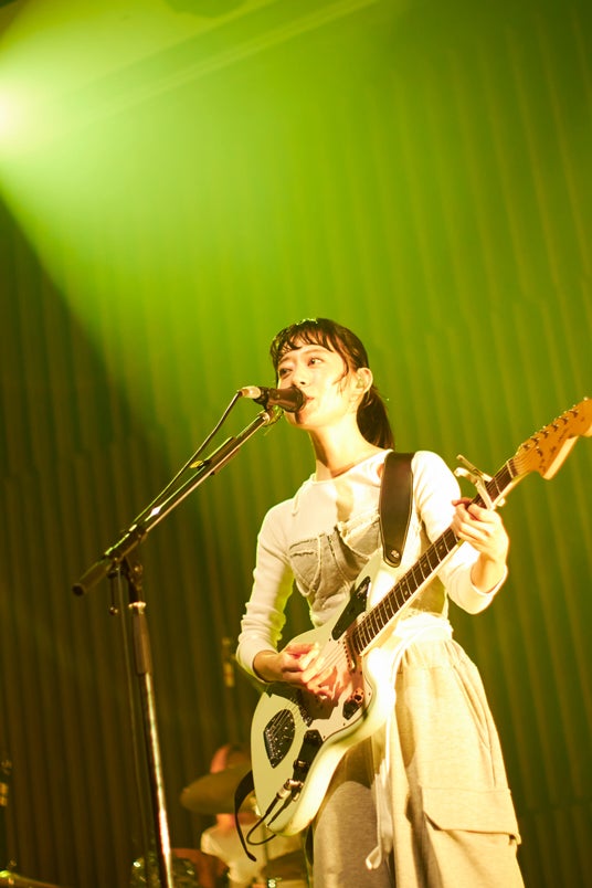 3曲を終えて最初のMCになると、挨拶もそこそこに2人は「未来体験シアター絶対に見たほうがいいよ」とおすすめ。また自身がJ-WAVEの番組『GURU GURU!』内のコーナーナビゲーターを務めていることから、リスナーの存在も客席に確認するなど、ファンとのコミュニケーションを図ったあと、ひときわ力強いボーカルとギターソロを聞かせた1月リリースの楽曲「声」でライブを再開。ギターのアルペジオがやわらかく包み込む「tears」、客先から自然とハンドクラップが上がった「マヨイガ」、生命力あふれるビートとダイナミックなサウンドが場内を満たした「光るとき」と多彩な楽曲群で会場を染めていった。