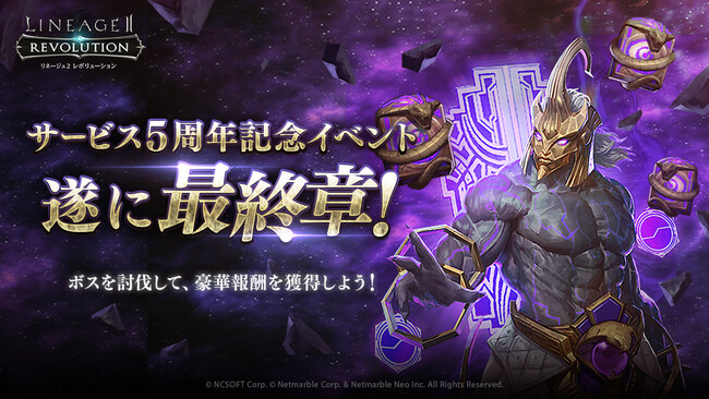ネットマーブルは、スマートフォン向け超巨大マルチバトルRPG 『リネージュ2 レボリューション (Lineage2 Revolution)』において、本日9月15日(木)にゲームのアップデートを実施し、サービス開始5周年記念イベント最終章となる第3弾の開始や新商品を追加したことをお知らせいたします。