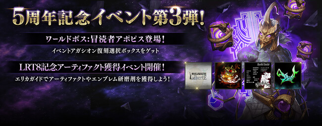 ◆5周年記念イベントもいよいよ最終章に突入!ワールドボスを討伐して豪華報酬を獲得しよう!LRT8記念アーティファクト配布イベントも開催