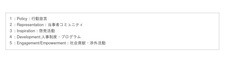 任意団体「work with PRIDE」が、企業・団体等の枠組みを超えて LGBT が働きやすい職場づくりを日本で実現するために策定した、職場における LGBT に関する取り組みの評価指標 です。 この指標を基準にして LGBT が働きやすい環境の実現に取り組んでいる企業や団体を表彰しています。