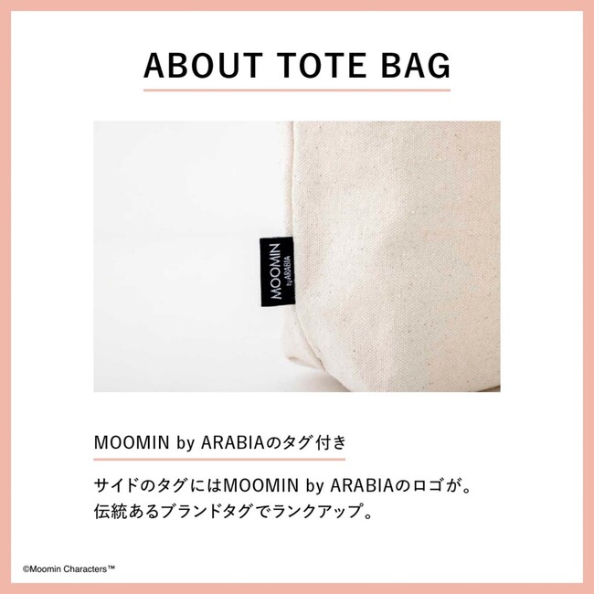 世界中に熱烈なコレクターを持つ「MOOMIN by ARABIA(ムーミン バイ アラビア)」のマグカップ。その大人かわいいマグデザインを、コットン100%の上質なトートバッグに落とし込んだ特別なアイテムです。