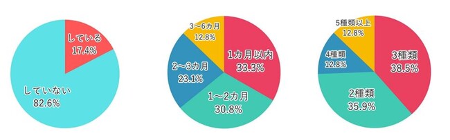 種類 3種類 38.5%、2種類 35.9%、5種類以上 12.8%、4種類 12.8%