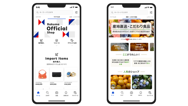 「ラクマ公式ショップ」では、実店舗の運営などで実績のある大手のリユース事業者や並行輸入事業者が出店し、プロにより検品されたリユース(中古)のブランド品やスマートフォン端末、並行輸入品などを数多く取り扱っています。また「産直・こだわり食品」では、食品ジャンルにおける生産者や加工業者、卸業者の事業者が出店することで、農産物や水産物などに特化した商品を販売しています。さらに、年内半ば(予定)には、アパレルブランドと連携したブランド公式のアウトレットやセール品の取り扱いも開始する予定です。