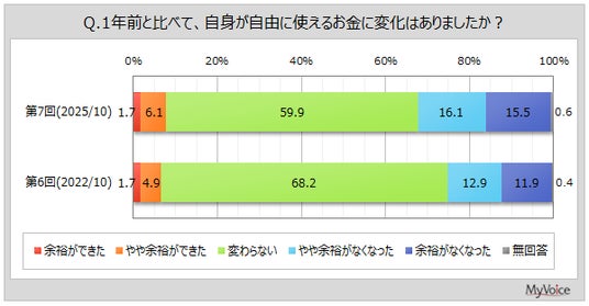 マイボイスコム株式会社(東京都千代田区、代表取締役社長:高井和久)は、7回目となる『お金の使い道』に関するインターネット調査を2025年10月1日~7日に実施しました。
