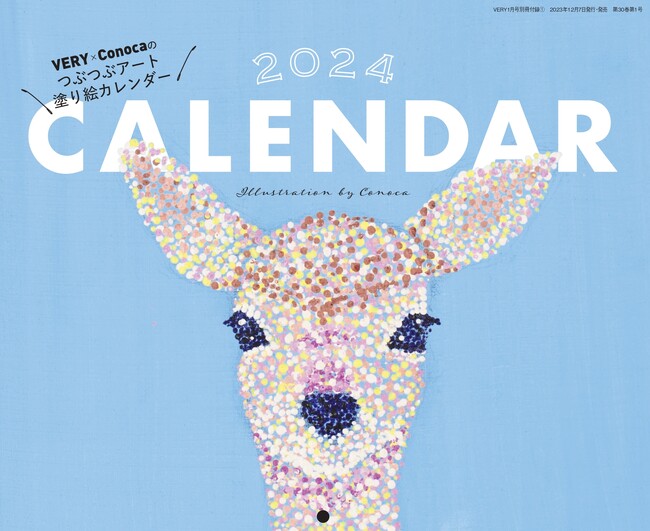 動物や背景を細かな丸や線で表現する繊細さと、大胆でカラフルな色遣いが見るものを圧倒する「つぶつぶアート」が話題のキッズアーティストConocaちゃん。メディア出演もあり注目されている彼女が、『VERY』1月号の別冊付録「塗り絵カレンダー」のために、新作を描き下ろしてくれました。