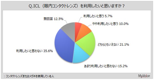 コンタクトレンズまたはメガネをしている人に、ICL(眼内コンタクトレンズ)の利用意向を聞きました。