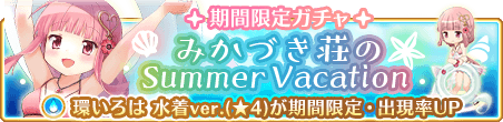 ・本ガチャは、2018年8月8日16:00~8月21日14:59に開催した『期間限定ガチャ みかづき荘のSummer Vacation』の復刻となります。