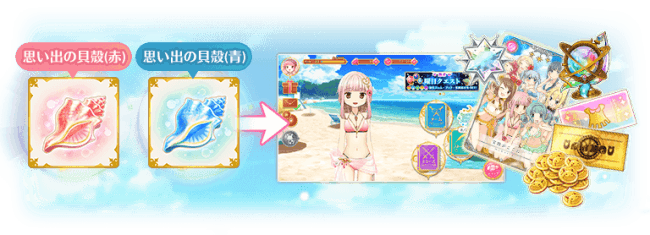 クエストをプレイすると「思い出の貝殻(赤)」「思い出の貝殻(青)」を獲得できます。