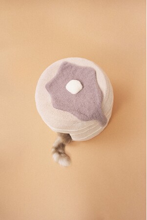 メープルシロップととろけるバターのデザインがアクセントの、ふっくらとした焼き立てパンケーキのフォルムにときめく犬猫兼用のハウスです。ふんわりソフトな'ベビモコ'素材を使用し、中にはもちもちふわふわのクッションが入っています。猫の好む潜れる形状になっています。小型犬のお昼寝スペースとしてもおすすめです。