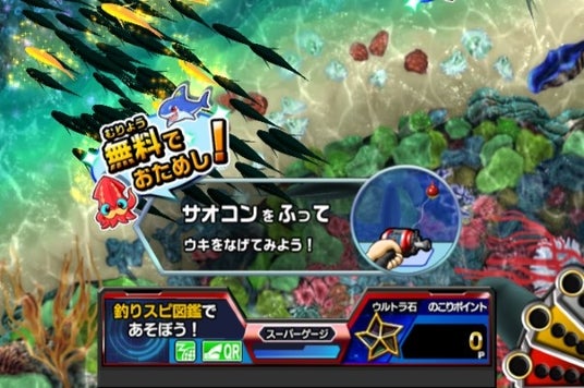メダル投入前にサオコンを振ってウキを投げ入れ、魚が食いつくまでを無料で体験できる新機能『おためしキャスト』が登場。メダルを入れる前にチュートリアルのようにお試しいただくことができます。遊んだことがない方もこの機会にぜひお試しください。