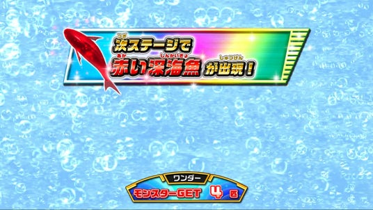 『マグマロドン』が登場するワンダーステージ『地球誕生マグマオーシャン』は、モンスタークラスを釣って『ワンダーゲージ』を貯め、その後出現する赤い深海魚『ワンダーカギノウオ』を釣ると挑戦することができます。『ワンダーゲージ』はプレイヤー共通で、誰か1人でもワンダーカギノウオを釣りあげればプレイヤー全員が『ワンダーステージ』に進むことができるので、プレイヤー同士の協力が鍵になります。