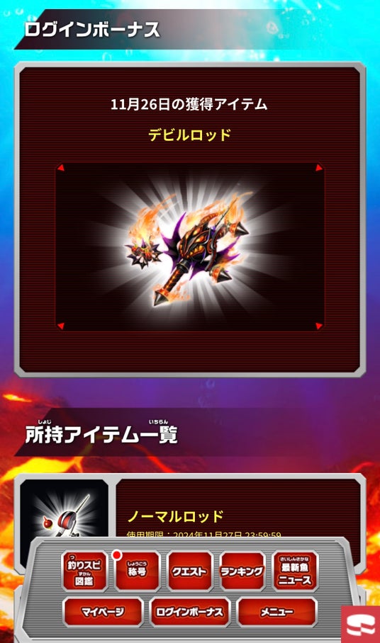 ◆『釣りスピ-NET』にログインボーナス機能が登場