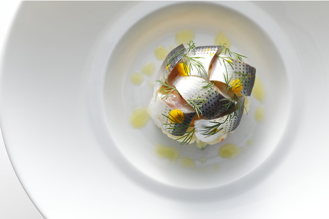 「泡茶」と一緒におすすめするメニューは「おかそだちサーモンの低温コンフィ」。泡茶に含まれる梅の酸味と香りが、サワークリームで爽やかに仕上げたサーモンと相性抜群です。