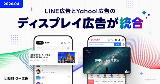 LINEヤフー株式会社(以下、LINEヤフー)は、これまで個別に提供していた「LINE広告」と「Yahoo!広告 ディスプレイ広告」を統合し、新たな広告プラットフォーム「LINEヤフー広告 ディスプレイ広告」の提供を開始しました。本統合は、LINEヤフーが掲げる新たなプロダクトコンセプト「Connect One」のもと進めてきた基盤統合の一環であり、LINEとYahoo! JAPANの国内最大級のメディアとデータを横断的に活用することで、より高精度な広告配信を実現します。なお、「Yahoo!広告 検索広告」は、「LINEヤフー広告 検索広告」に名称変更します。