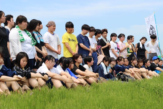 株式会社伊彌彦の代表である竹野勝行様の指示のもとで田植え実習がスタート。JA新潟かがやきの方々のサポートで、学生は積極的に実習を行い、足を滑らせながらも1時間半で田植えを終えることができました。
