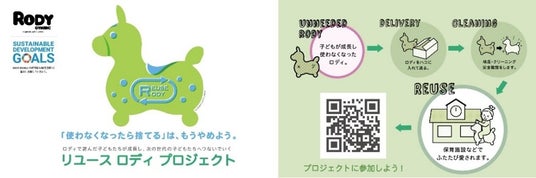 「使わなくなったら捨てる」は、もうやめよう。まだ使えるものを「捨てる」という選択をせず「くりかえし使う」ということを、これからの未来を生きる子どもたちにも日常の習慣となるよう伝えていく活動です。リユースロディは、日本全国の保育園・幼稚園・児童館などの児童施設、子どもの集まる場所へ送られます。