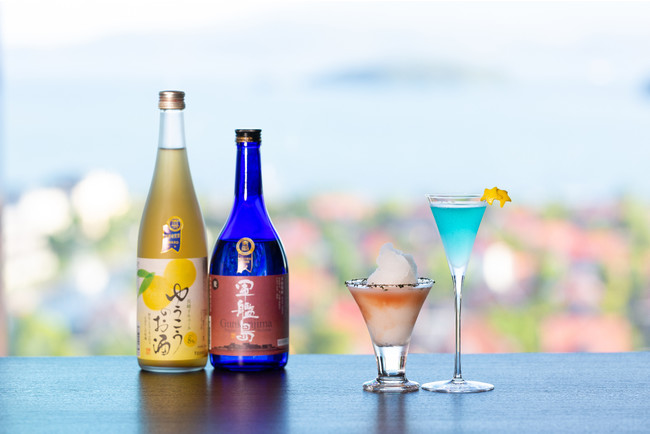 西九州新幹線と同日に運行が開始するD&S列車「ふたつ星4047」。“窓から見える海”をコンセプトに幻の果実といわれる「ゆうこう」の果汁で仕込んだ長崎のリキュール「ゆうこうのお酒」を使用したカクテルです。