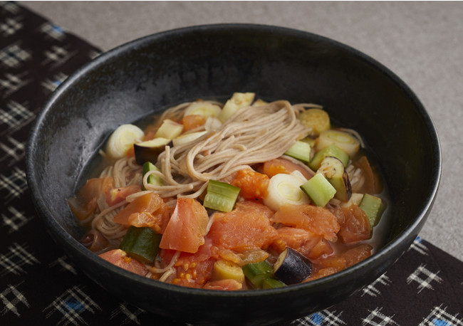 野崎流・温かい蕎麦「トマト加薬そば」。