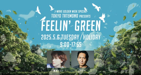 ラジオ局J-WAVE(81.3FM)では、5月6日(火・振替休日)9:00~17:55、次世代に繋いでいきたい取り組みやカルチャー、未来に残したい音楽=EVERGREEN MUSICを9時間にわたってお届けする特別番組『J-WAVE GOLDEN WEEK SPECIAL TOKYO TATEMONO presents FEELIN' GREEN』(ナビゲーター:豊田エリー、nico)を放送いたします。