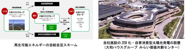 2022年度には大和ハウス工業単体の再生可能エネルギー利用率を100%に、2023年度には大和ハウスグループ全体で100%を達成する計画です。これにより、「RE100」(※1)の達成を当初目標の2040年度から2023年度に前倒しします。