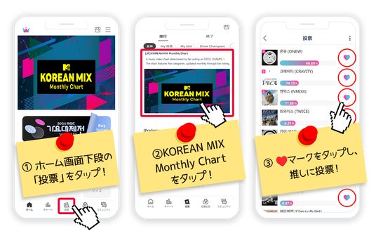 2025年2月より開始したK-POPアイドル応援アプリ『IDOL CHAMP』内の投票機能と連動したMTV放送局が運営する「KOREAN MIX Monthly Chart」のMV特別投票が開始されました。
