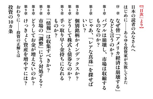 “投資の神様”バフェットが妻に遺言した金融商品とは? 個別銘柄か、インデックスか? 市場の暴落にはどう対処すればいいのか? 投資経験のない人にもわかりやすく具体的な商品や対処法を伝授し、投資経験のある人には「これでよかったのか!」と目からウロコの納得感を与え、投資に対する心構えまでがストンと腹落ちする一冊です。