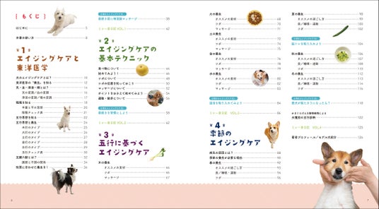 ツボをとらえたマッサージ、旬の食材を取り入れた食事・トッピング、関節痛など犬が隠しがちな痛みをケアする温活、口腔ケアなどさまざまなエイジング方法があります。
