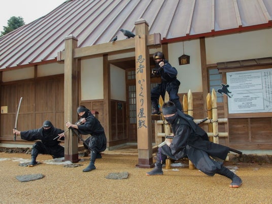 富士の麓の忍者テーマビレッジ。四季折々の情緒ある景色が楽しめる日本庭園内には、雄大な富士山を眺めながら楽しめる茶処や、忍者体験が楽しめる「忍者からくり屋敷」や「忍野手裏剣道場」、「忍者修行アスレチック 忍術皆伝の道」といったアクティビティが揃います。併設された食事処では、名物忍野黒カレーをはじめ、地域の食材を活かした地元の伝統食や日本料理をご提供いたします。