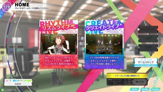 『アイドルマスター TOURS』では、流れてくるノーツに合わせてボタンとスライダーを操作する「リズムライブ」と、スコアを気にすることなく、自由なライブ演出が楽しめる「クリエイトライブ」の2つのモードを楽しむことができます。