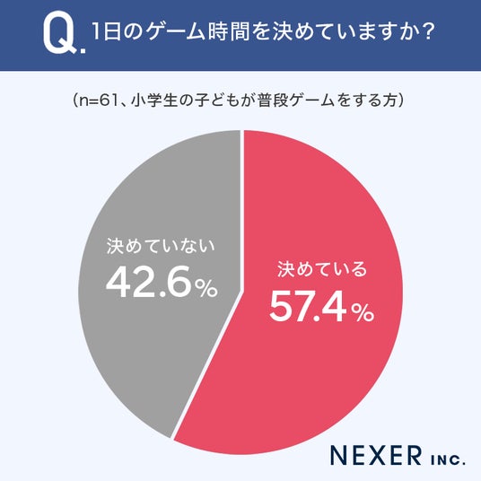普段ゲームをする小学生の子を持つ方の57.4%が、1日のゲーム時間を「決めている」と回答しています。