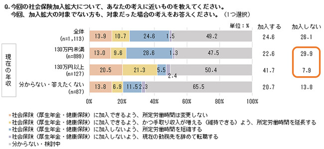 加入意向は130万円を境に大きく変化、130万円未満は約3割が「加入しない」