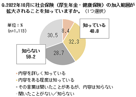 調査時(8月下旬時点)では、社会保険適用拡大について「知らない」が約6割